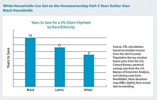 “There is a huge disconnect between our collective view of America as the land of opportunity and this data, which show renters face a steep climb in saving for homeownership,” said CRL researcher and report author Christelle Bamona. “This climb is especially steep for Black and Latino Americans, essential workers, and people weighed down by student debt.”