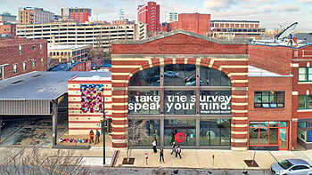 To draw public attention, the Center for Craft commissioned a large art installation on its building, including a 14-foot long “yarn bombing” that depicts the silhouette of an apartment building—an echo of its focus on developing affordable spaces for creative artists and performers in Asheville.