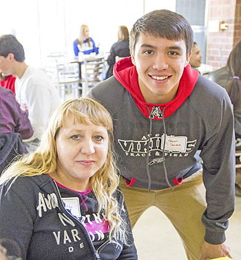 Incoming freshman Steven Sanchez poses with his mother, Rinda Clark, while enjoying lunch in the Mars Hill University dining hall. Steven, currently a senior at Avery High School in Newland, NC, plans to study criminal justice and play football for the Mountain Lions.