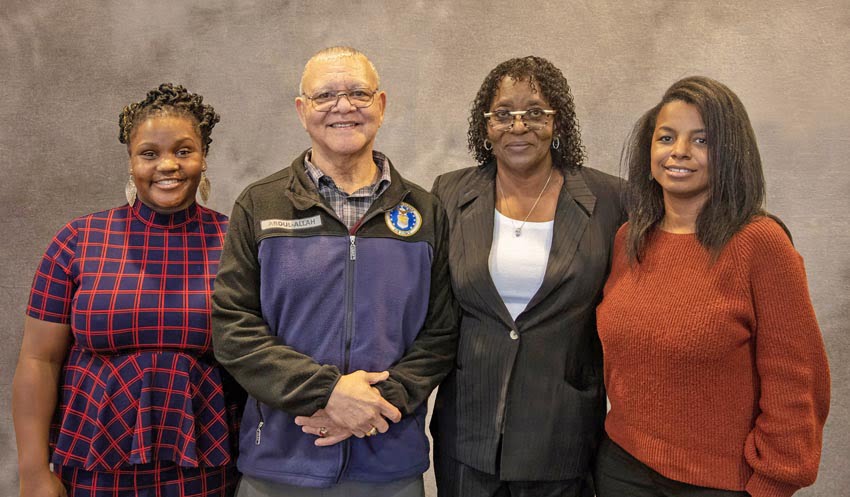 (L-R): Scholarship recipient Hadyyah Williams; founder of the 100 Men and Women Scholarship, Samuel Abdul-Allah; co-chair Johnnie Grant; and scholarship recipient Reese Huffman. Not pictured are scholarship recipients Shalaya Mabry and Shaida Floyd.