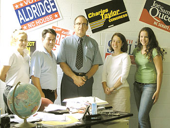 | From Left To Right: McDowell High School political club participants: Emma Schuman, Young Republican President; Jeff Penley, Young Democrat Advisor; Bob Yutzy, Social Studies Teacher and Dept. Head; Kendall Waugh, Young Republican Advisor; Allison Bryant, Young Democrat Member. |