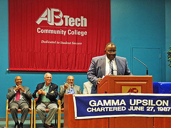 At the event, AB-Tech President Dennis King presented three scholarships to the community college to deserving young men. He was joined by representatives of Asheville City and Buncombe County school systems. Representatives from Western Carolina University, Warren Wilson College, UNC Asheville, and Mars Hill University also attended, along with Asheville and Buncombe County governmental officials.