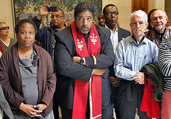 Rev. William Barber, president of the state NAACP, led a small contingent into position in front of the Senate chamber doors on Wednesday, April 29, where 10 of the group – including a reported seven clergy members – were arrested as they sang and chanted in protest of various legislative policies. They were charged with violating fire code.