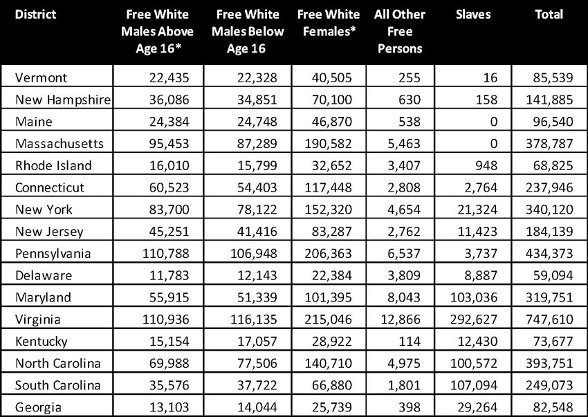 *Free white males age 16 and upward, and free white females includes heads of families.