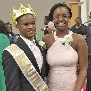 Each beau then escorted his partner for the evening to dance a waltz to the tune “Sky Fall.” The seven beaux and their young ladies were: Seth Bellamy accompanied by Taniya Webber; Barry Castellanos accompanied by Taeya Vance, DeAngelo Collins accompanied by Nyla Rice; Dorain Johnson accompanied by Mackayla Johnson; Jordan Proctor-Bates accompanied by Jada Proctor-Bates; Donovan Spencer accompanied by Empress Hackett (graciously substituting for Dorian Spencer), and Xaviar DeShane Stewart accompanied by Selena Perez-Casco.