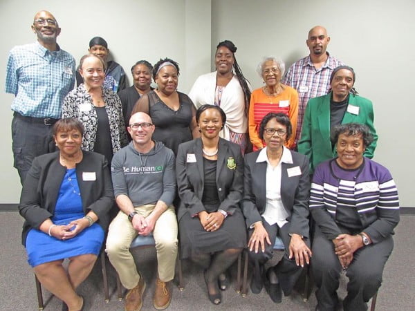 Cora Baten Harper, Barbara James. Back row: Jim Pitts, Trey Mourey, Marshay Proctor-Bates, Jamil Pitts.
