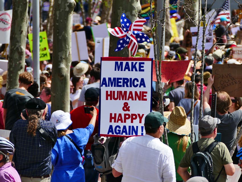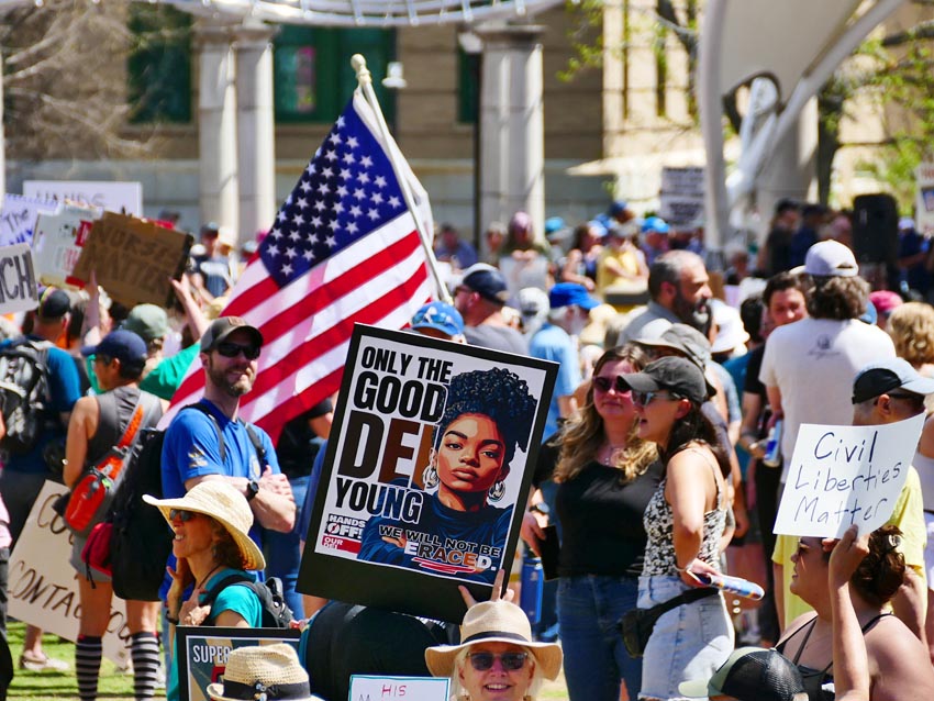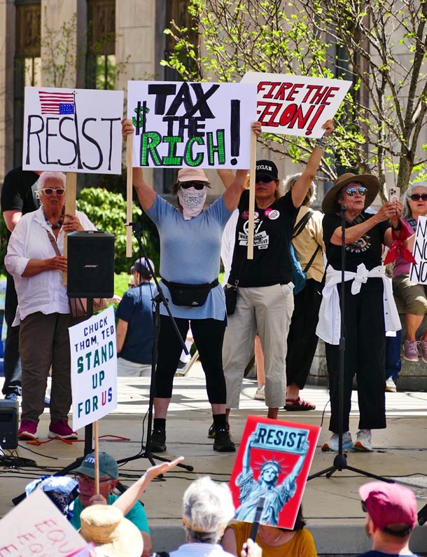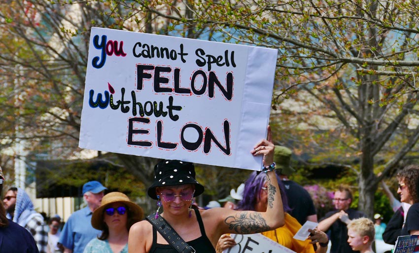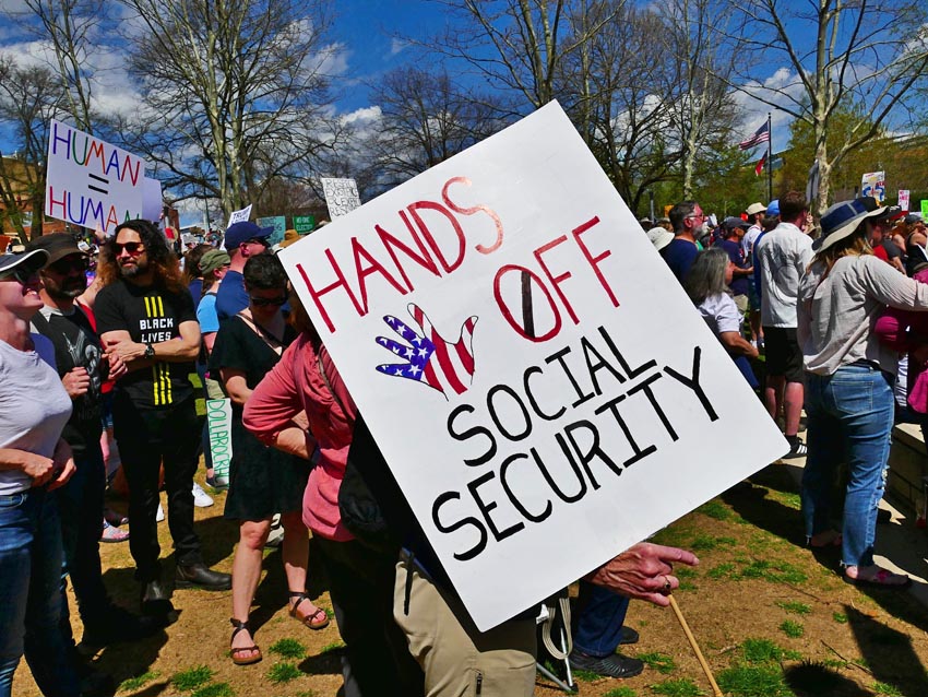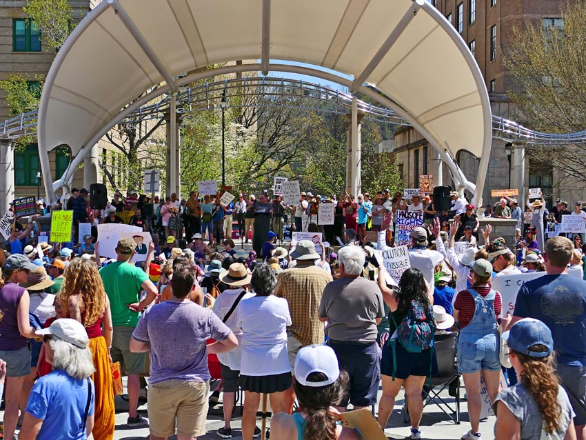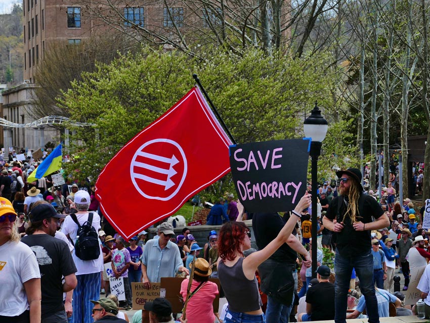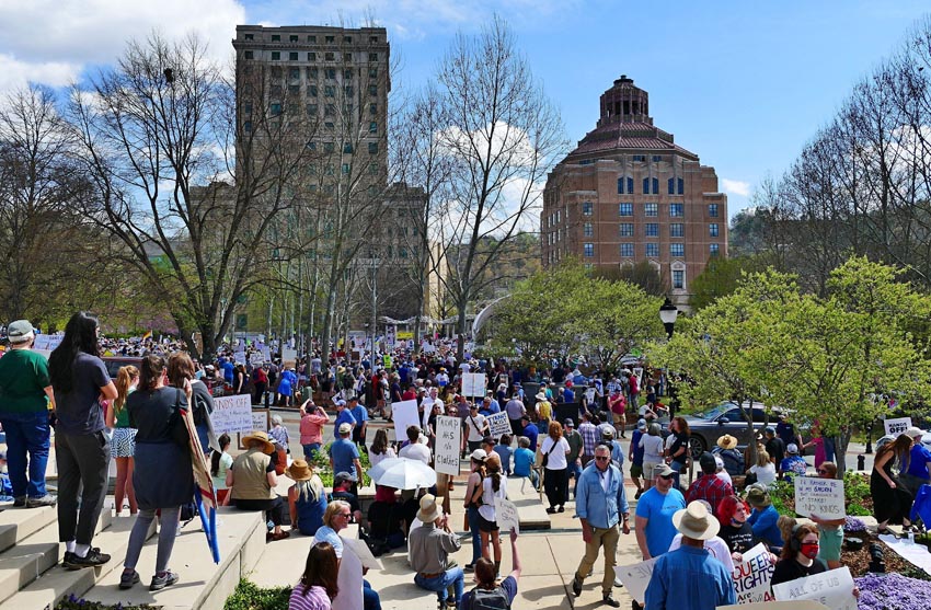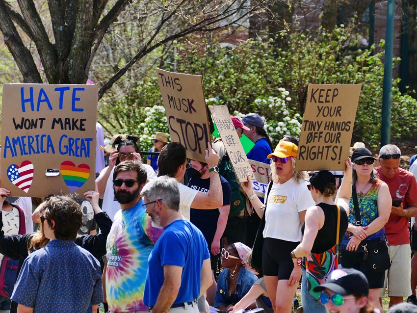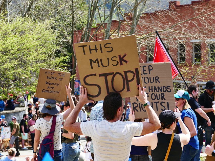 Protestors at the Hands Off! rally in Asheville, April 5, 2025.