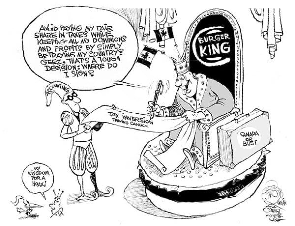 But the deal is clearly a whopper in that it’s based on a con. While Burger King’s CEO, Daniel Schwartz, offers some credible business reasons for the buy out, what he doesn’t want BK’s American customers to ponder is the clincher in the deal: It gives his corporation a huge tax dodge.