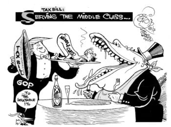 Who has time to enact regulations governing pollution control by energy companies, when they have to rush out and try to remove the hog waste that’s just been poured into our water supply? Who can ensure equal rights for minorities and women when even working white men—the GOP’s preferred demographic—can barely make ends meet? Who will rebuild the public schools when all the tax money is given away to Betsy DeVos’s friends for their private, for-profit academies?
