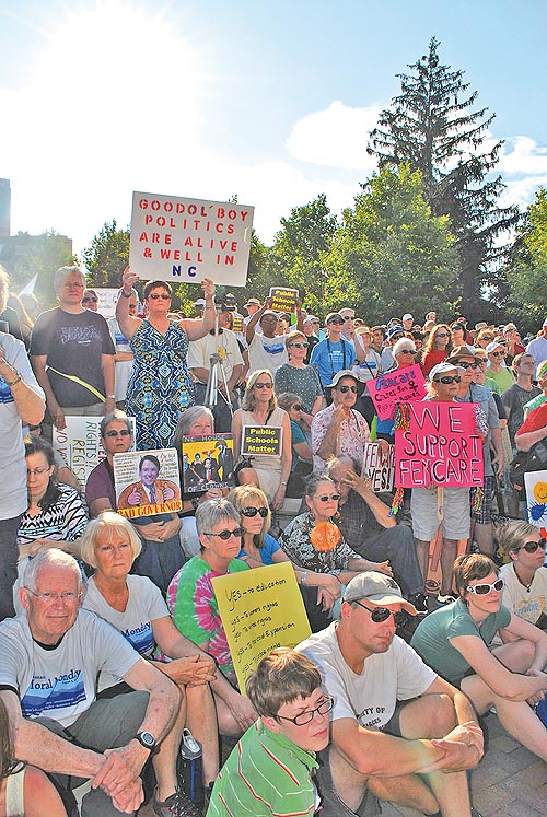 The Moral Monday rallies drew national attention along with thousands of participants in Raleigh, and the largest of all, with 10,000 people, took place in Asheville in August. Conservative African American churches found themselves in common cause with women’s rights and gay rights organizations, environmentalists, healthcare advocates, and civil rights groups in objecting to the takeover of state government by radicals funded, in many cases, by secretive, self-serving multi-millionaires.