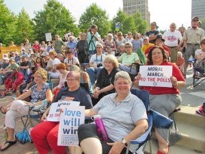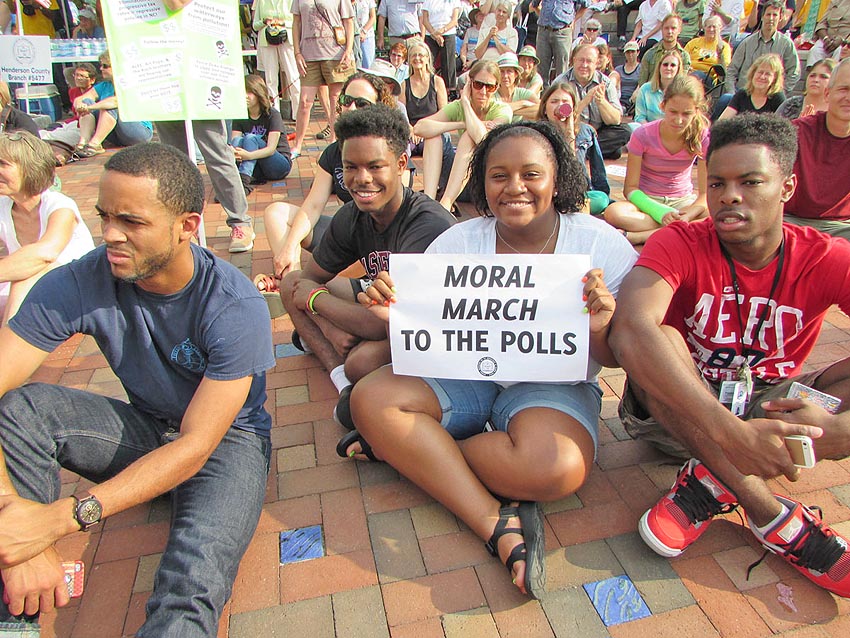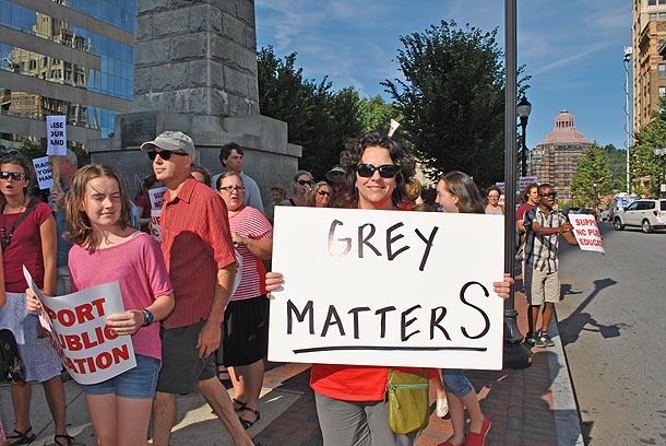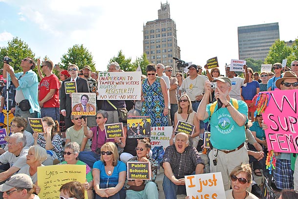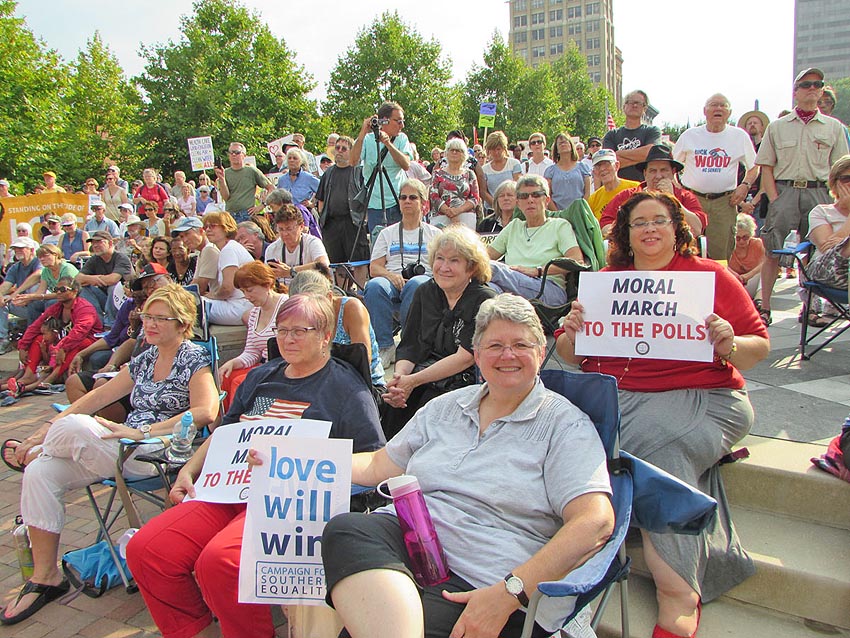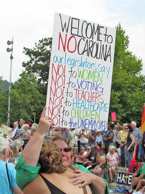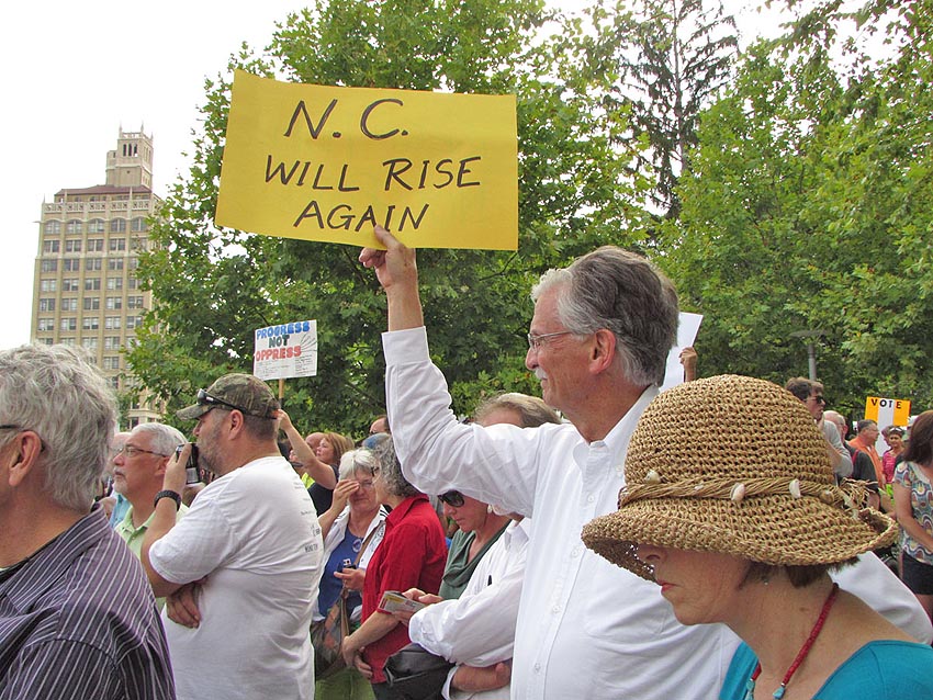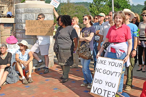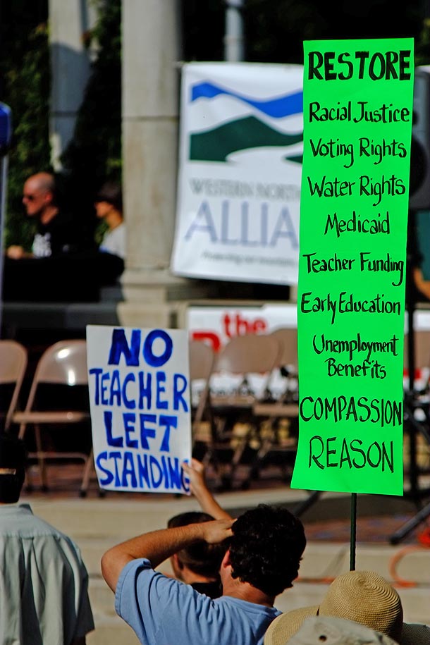 Since April, 821 people have been arrested in the Raleigh “Moral Monday” demonstrations, including 68 people from WNC. Those 68 people were honored at the event along with others arrested for non-violent civil disobedience in the state capitol.