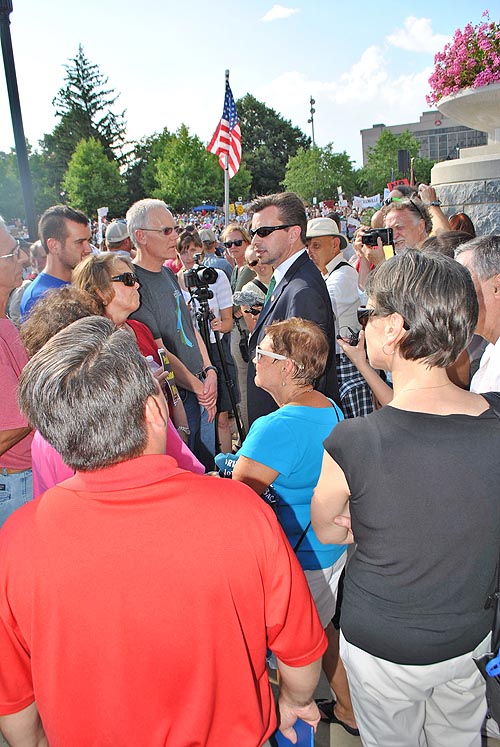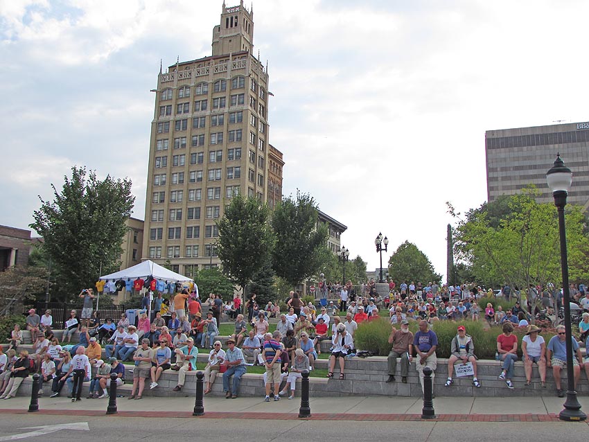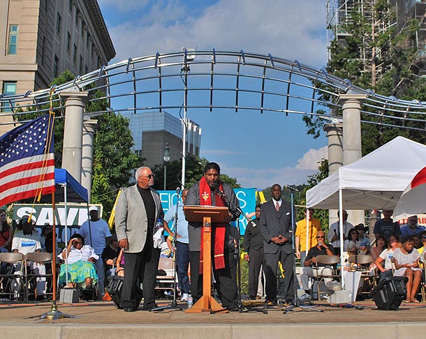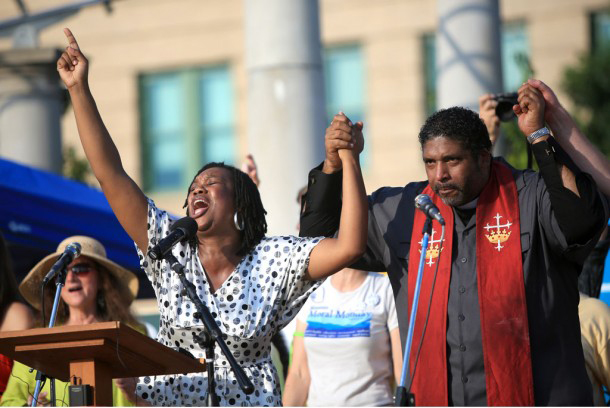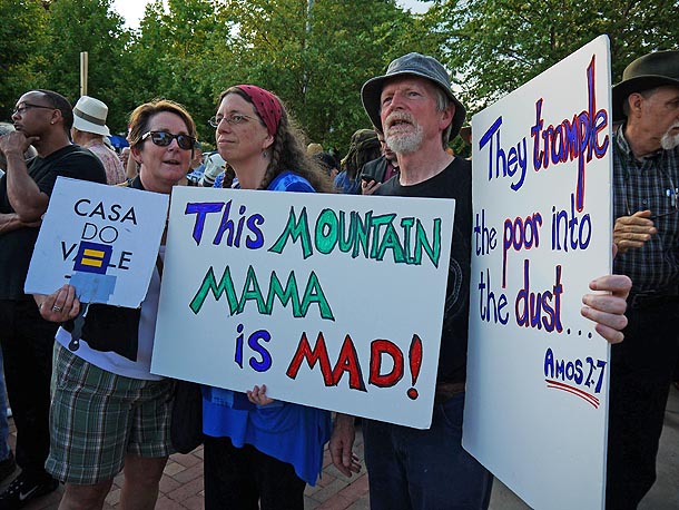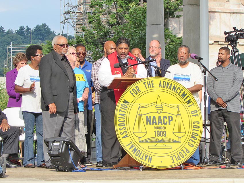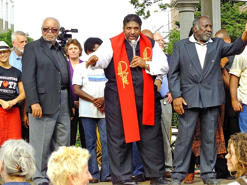 On Monday August 5 a coalition of WNC groups hosted Mountain Moral Monday, a non-partisan event organized to highlight the abuse of power and cruel policies coming out of the N.C. statehouse. The event took place at Pack Square Park and featured Rev. Dr. William Barber, President of the NC NAACP, the grassroots leader responsible for shining a national spotlight on what the New York Times has called “The Decline of NC.”