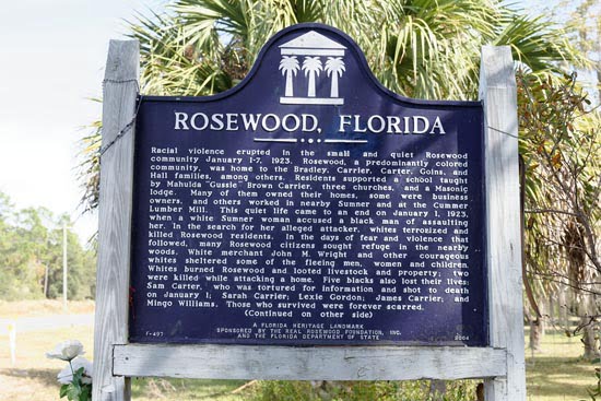 It was not until 2004 that the state of Florida erected a plaque (https://www.hmdb.org/m.asp?m=17707) commemorating the destruction of the community and the deaths of at least six Black residents and two White men. Those two—a sheriff’s deputy and a local lumberman—had tried to invade the home of Sarah Carrier, a Black woman who did laundry for White families. To protect her and his cousin, her grown son Sylvester shot them as they tried to come through the doorway; he was later tracked down and killed.