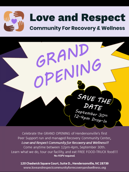The Love and Respect Community for Recovery and Wellness is located at 120 Chadwick Square Court, Suite D, Hendersonville, NC 28739. For more information, please visit www.loveandrespectcommunityforrecoveryandwellness.org or call (828) 595-2202.