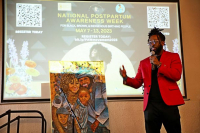 Keynote speaker Omari Maynard, of Hulu’s documentary, “Aftershock,” shared his personal story of losing his partner thirteen days after she had an emergency c-session due to medical negligence. Left to simultaneously grieve his partner’s death and navigate fatherhood alone, Omari emphasized the need for birth doulas to be on the frontline of the birth justice movement to combat the high Black and brown infant and maternal mortality rates across the nation.